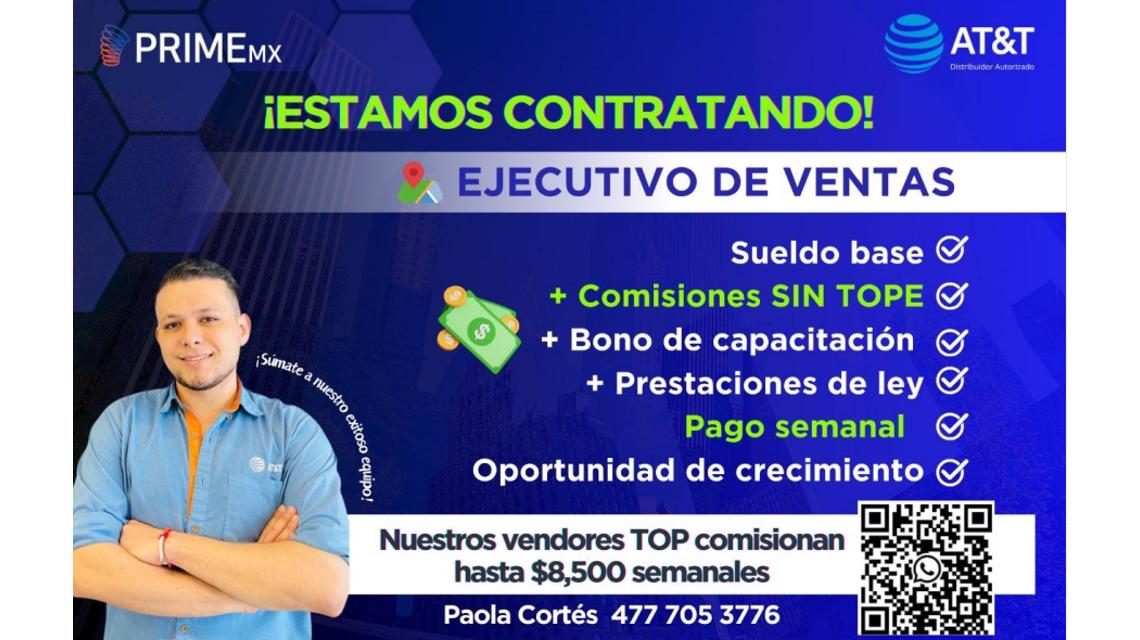 Por incremento de operaciones en ZONA NORTE DE LEON GTO: Solicitamos: Vendedor/a de telefonía AT&T-PLAZA PUERTA BAJIO CERCA DE LA ANTORCHA!!