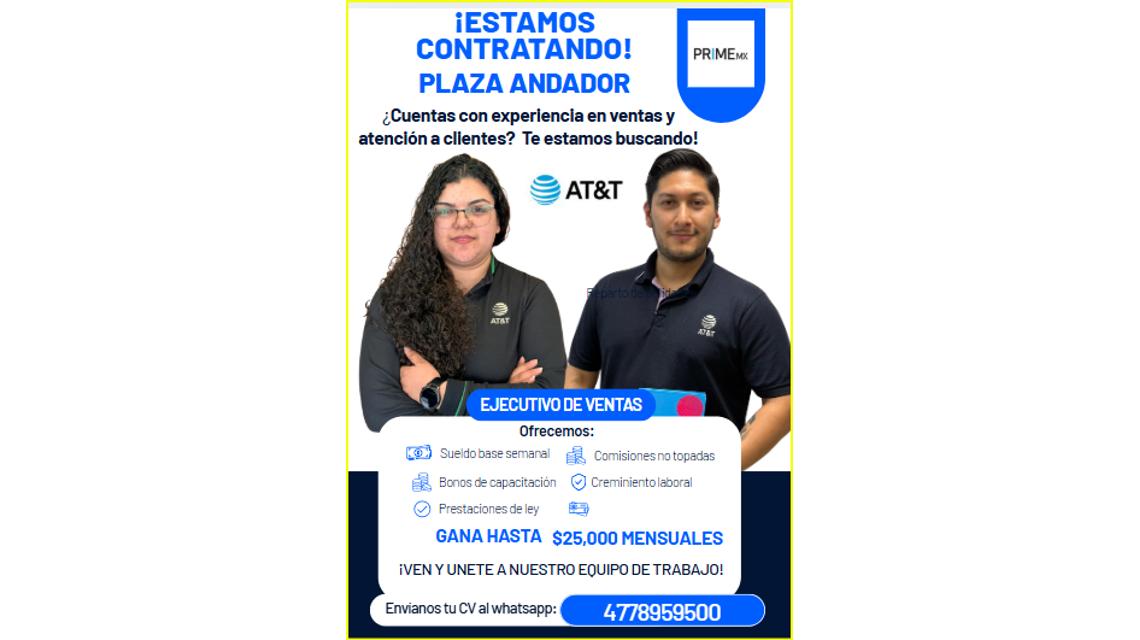 Tu misión: brindar atención y asesoría a clientes para el cierre de ventas de telefonía celular AT&T